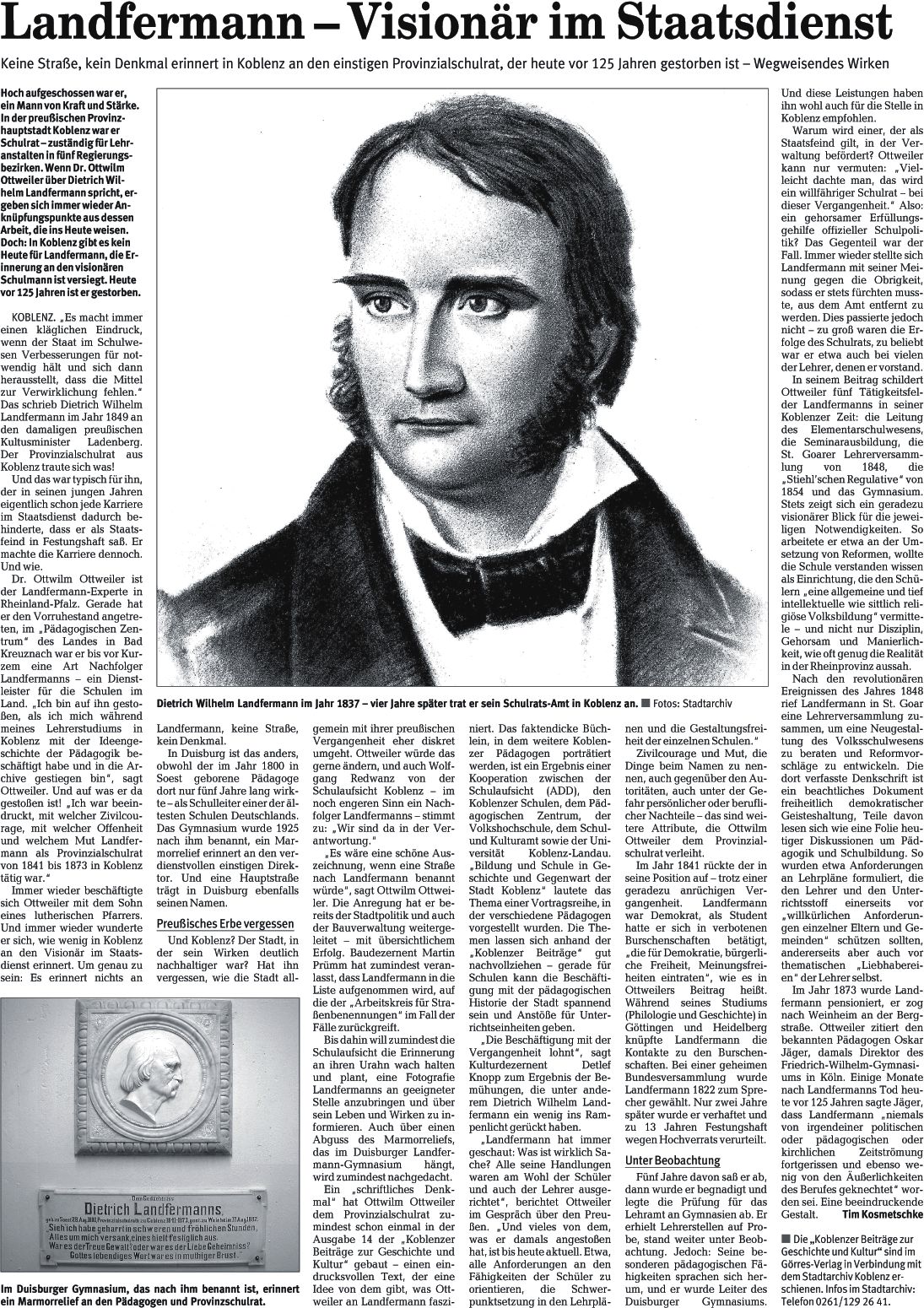 - Ottwilm Ottweiler: Der Koblenzer Provinzialschulrat D.W. Landfermann.(656 kB)